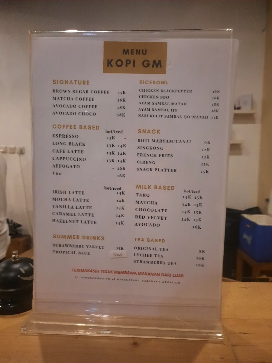 Introducing the Menu at Kopi Gayeng Marem (kopi.gm)